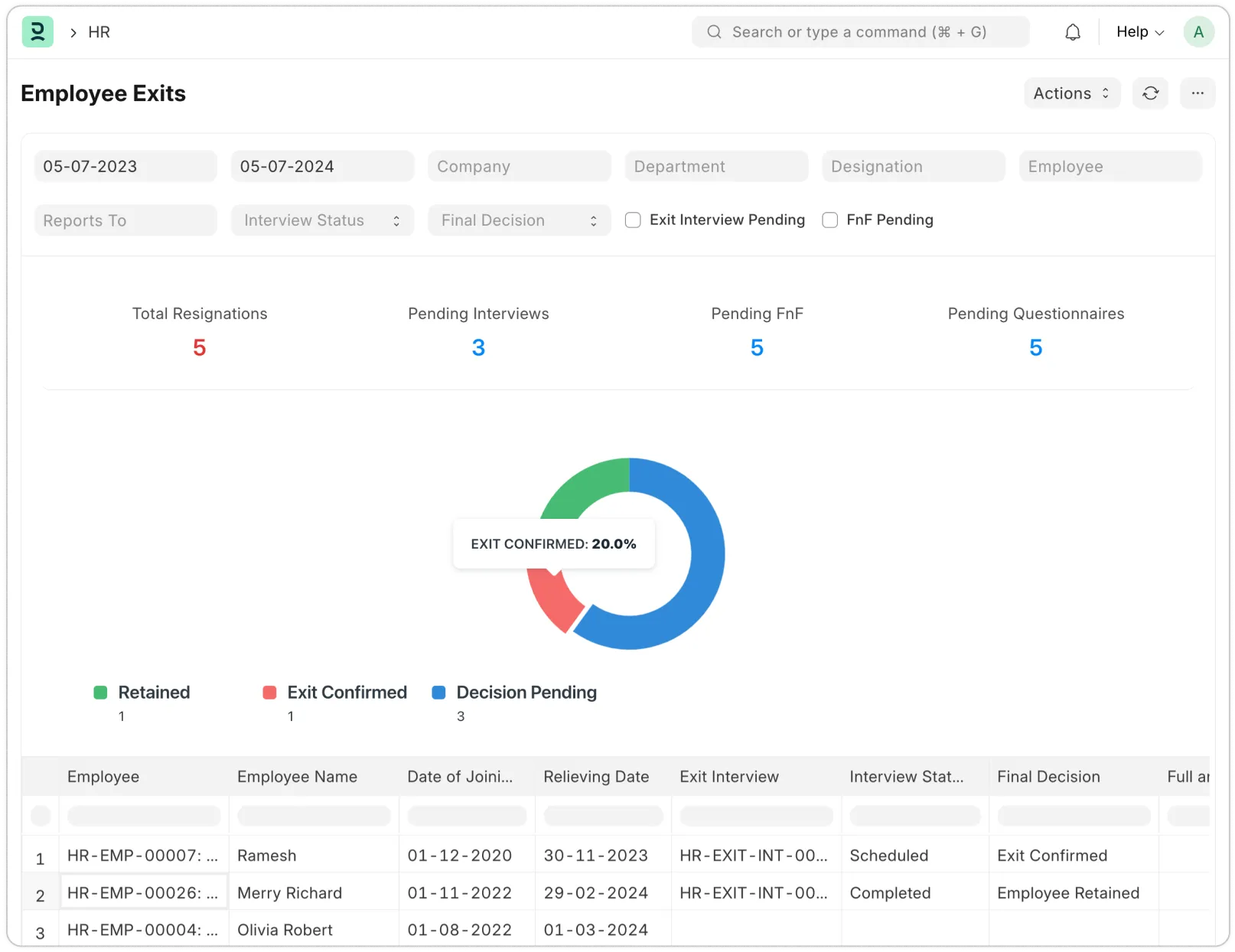 Capture valuable feedback with customizable exit questionnaires to improve retention and company culture while ensuring departing employees feel valued.